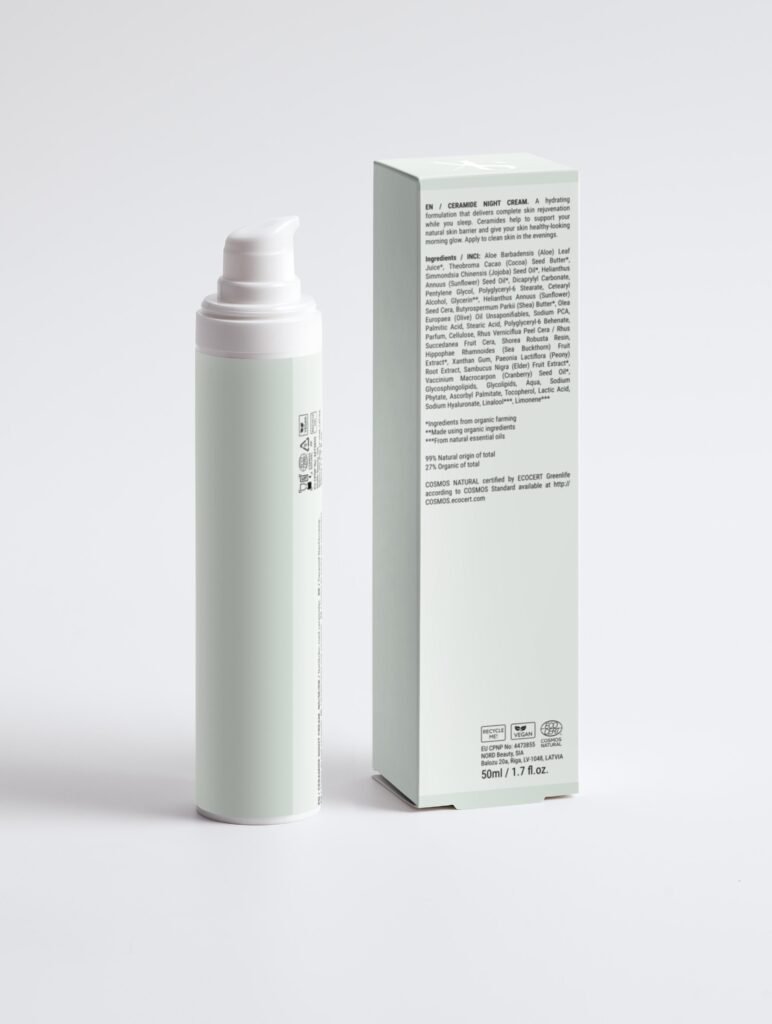 La Crema de noche hidratante con barrera de Ceramida está cuidadosamente formulada con ingredientes que actúan durante la noche, promoviendo la renovación de la piel y una luminosidad radiante. Su fórmula hidratante se desliza fácilmente sobre la piel y proporciona un rejuvenecimiento completo mientras duermes. Las ceramidas ayudan a fortalecer la barrera cutánea natural y le dan a tu piel un aspecto saludable por la mañana. Aplícala sobre la piel limpia por la noche.