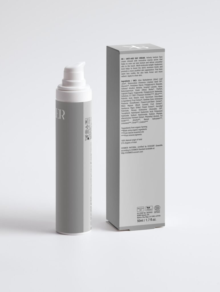 Crema de día antiedad 50 ml de textura aterciopelada con activo marino y ácido hialurónico multimolecular. Ayuda a unificar la textura de la piel, aumentar la hidratación y mejorar el aspecto de firmeza y luminosidad, dejando las líneas de expresión menos visibles. Aplicar sobre la piel limpia.