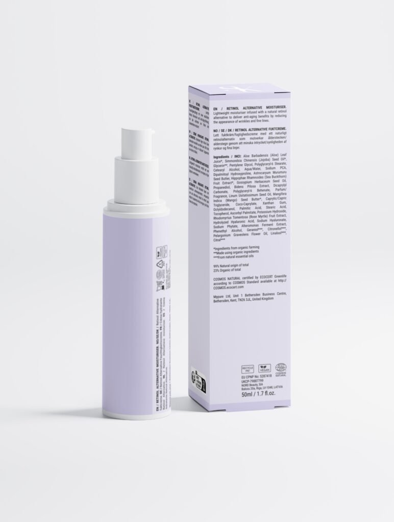 Crema renovadora ligera con beneficios antiedad similares a los del retinol sin causar irritación. Con extracto de Bidens pilosa (alternativa natural al retinol), ayuda a reducir la apariencia de arrugas y líneas de expresión y es una opción suave y eficaz para el uso diario. Aporta hidratación profunda, dejando la piel nutrida, suave y con un aspecto más radiante y fresco.